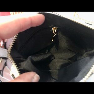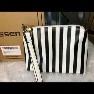 Coin Purse Black White Stripe accented in gold, 2 straps one to carry or over your shoulder or neck!