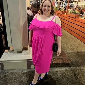 Bright Pink Off-Shoulder Cocktail Dress - City Chic
