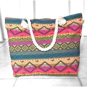 1 LEFT! Neon Aztec Vibrant Canvas Women’s Summer Beach Medium Size Tote Bag