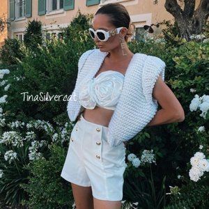BLOGGER'S FAVE! Zara Floral Appliqué Crop Top White NWT