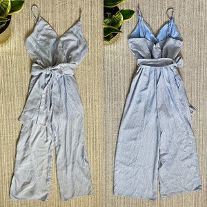 Sienna Sky blue & white striped wide leg jumpsuit
