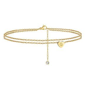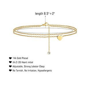 "Ankle Bracelets, Letter- G, 14K Gold Plated Dainty Layered Heart , ELDM22105G