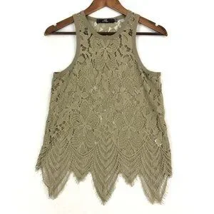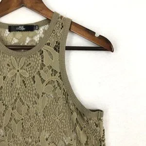 BKE Boutique Women's Size Small Olive Green Brown Eyelash Lace Scoop Tank Top