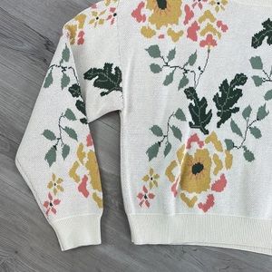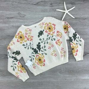So essential floral knit sweater that's perfect for colder days. It has a slouchy fit design and ribbed collar, cuffs and bottom hemline.