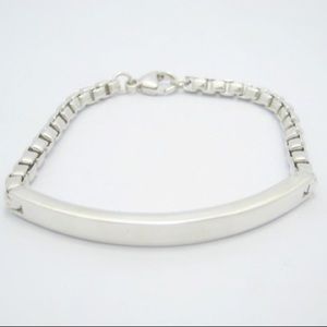 This is a gently worn (only once to be honest) in new condition Tiffany & Co. 2004 Venetian Link 925 Sterling Silver ID Bracelet. I purchased it online thinking it would be a little more masculine but it is just a little to “dainty” for my liking. ID bar has never been engraved. It is in excellent “used” condition - 9.9/10