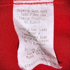 100% red Polyester — Easy Care.