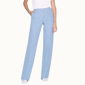 Feel the lightness of linen with this pants. The light blue denim color freshen and brighten up any look you might think of. The straight leg will pair perfectly with the clear lines of a blazer. Features a front button closure and and an elastic waistband for more comfort.