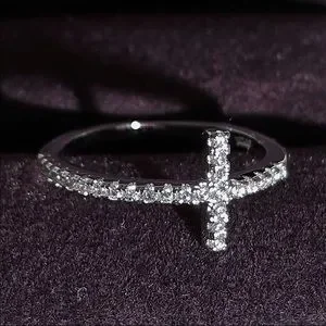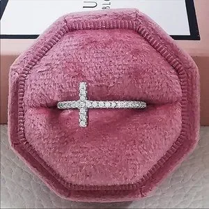 New Women’s 925 Silver Cross Diamond Ring