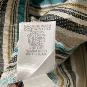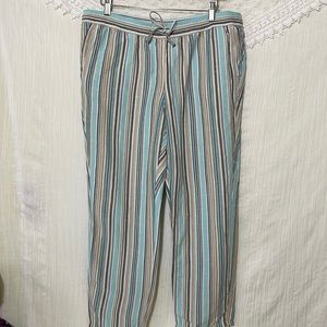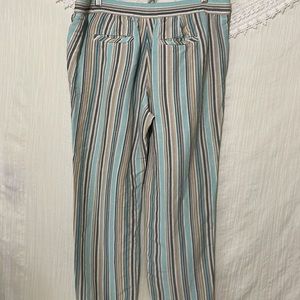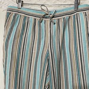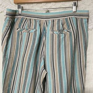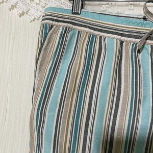 Pants Linen Blend Pull-On Tie Waist Tan Striped