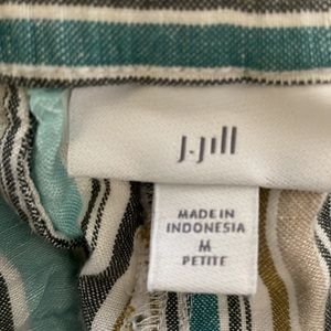 J. Jill Womans Pants Linen Blend Pull-On Tie Waist Tan Striped Petite Medium