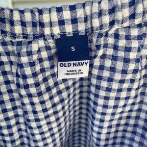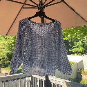 old navy ladies size s blue check peasant blouse nwot