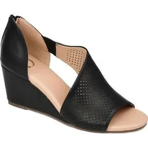 Journee Collection Womens Aretha Black Faux Leather Wedge Sandals Shoes NWOB