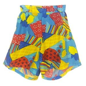 VINTAGE Oscar de la Renta Postmodern “Cherry Lemonade” Print Silk Bermuda Short