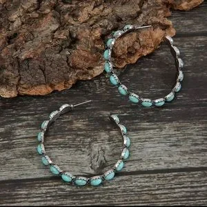 Beautiful Boho Turquoise and Silver Hoop Earrings
