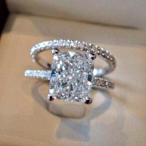Engagement Radiant Cut CZ Thin Romantic Wedding Ring Set for Women, K969