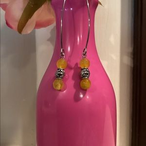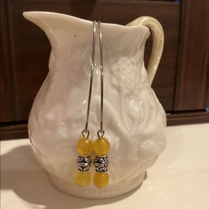 Yellow glass beads with silver tone beaded accents on silver tone ear wires. Total length is 2.25”. Handmade by Shelly, one of a kind fashion jewelry. Brand new.
