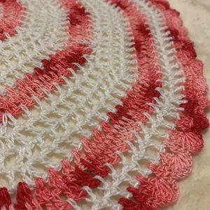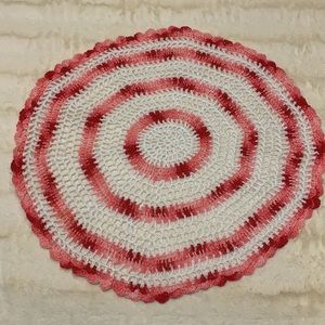 Crocheted Doily Pink and white Handmade