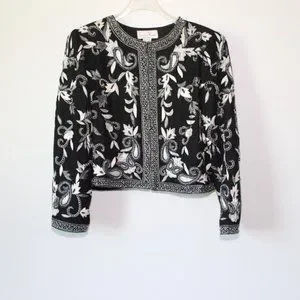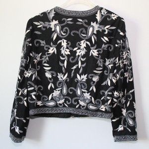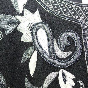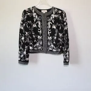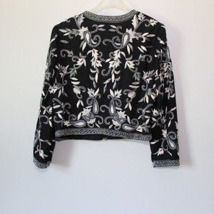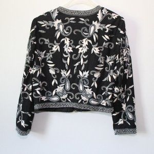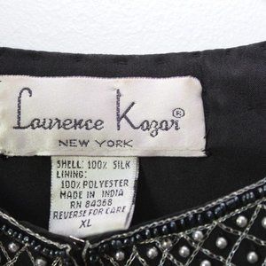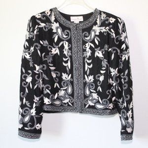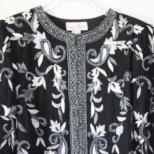 Vintage Laurence Kazar Silk Beaded Embroidered Blazer Jacket Black XL H13428