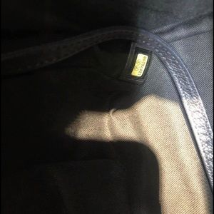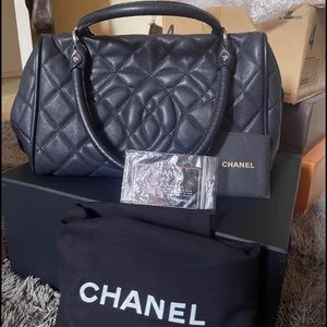 Black Chanel bowler bag with Interior Pockets: Two zip pockets and one cell phone pocket.