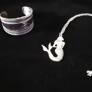 Beautiful Silvertone Mermaid Necklace and Cuff Bracelet