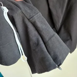 Measures approximately 22 inches long and 17.5 inches pit to pit. Arm opening is 11 inches across. Zipper on side.