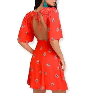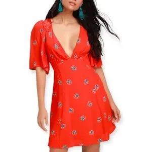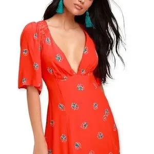 Free People Mockingbird Coral Floral Print Backless Mini Dress
