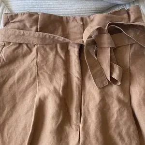 The very popular Wilfred high wasted linen pant with tie detail, yours for the summer! In a cool honey beige color, it’s effortless and stylish at the same time. Length hits at the ankles, only worn a few times.