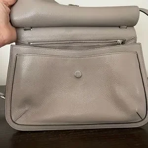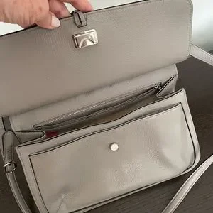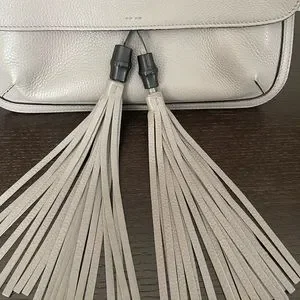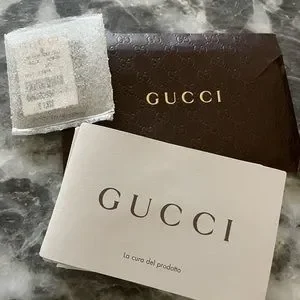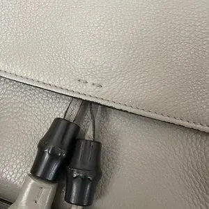 This authentic, GUCCI, Tasseled Lady Bamboo pebbled grey leather crossbody/shoulder bag has a single outer flap with inner clasp closure with the embossed Gucci logo on front of the bag and adjustable strap with silver tone buckle/hardware. EUC. Light stains on lining, faint mark on one side. Four internal pockets including one zipped pocket, smart phone pocket and inner flap section. Tone on tone, Baiadera cotton/linen lining. Long double leather tassels with bamboo accents, hang in front. Great everyday, roomy bag. Measures 12.4 Wide, 8.2 High and 4.3 Deep. 18-22” drop. Includes Gucci cloth dust bag. Price tag, Receipt and Gucci cards in photos. Last photo shows a different color for reference only. First photo also for reference, not actual bag. All other photos are mine. Any questions, just ask.