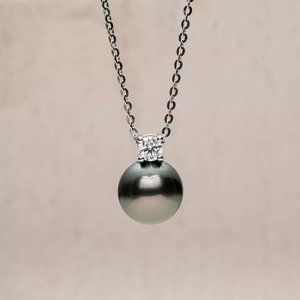 Genuine Tahitian Pearl 0.3ct. t.w. Diamond Necklace 18k Gold over Italy Silver