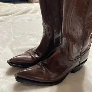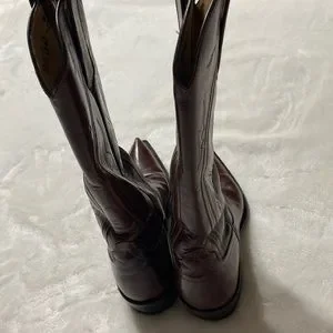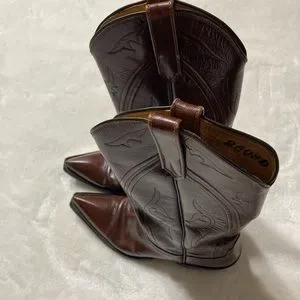 Extraordinarily great condition! These vintage brown leather cowboy boots have embroidered detailing and great traction. Slip on boots with pointed toe. 1.5” heel.