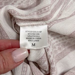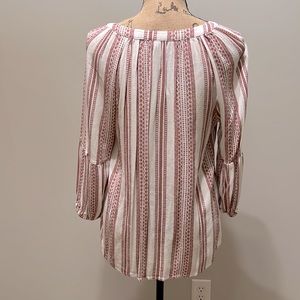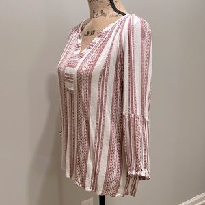 Brina & Em Brand. Size Medium. Red and white boho print women’s top. Features a V neck opening, and quarter length sleeve with elastic band. Great condition.