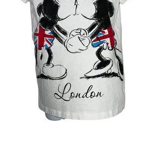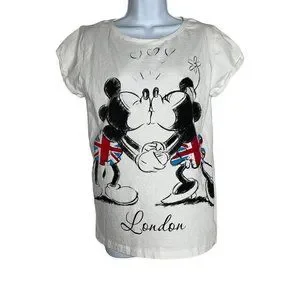 Rare Walt Disney Mickey Minnie Kissing London Great Britain Flag Tee T-Shirt L