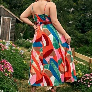Boho Bohemian Plus Size Geo Abstract PatchWork Print Halter Ruffle Maxi Dress
