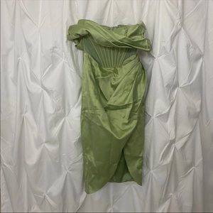 House of CB Lulu Pistachio Asymmetric Drape Midi Corset Dress