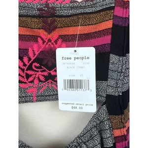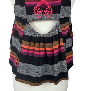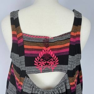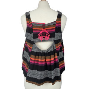 Free People Black Combo Stripe Embroidered Tank Shirt Size XS