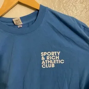 Sporty & Rich Athletic Club Tee Shirt Blue Size XL
