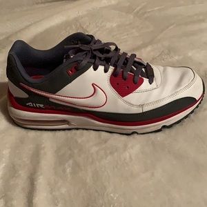 Stylish air Max’s. Red, grey and white with red detailing around the Nike logo. Gently used, comes with box!