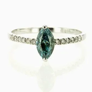 Marquise Cut Diamond Engagement Ring Fancy Blue Treated 14K White Gold 0.83 TCW