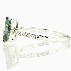 Blue Marquise Cut Diamond Engagement Ring 14K White Gold 0.83 TCW