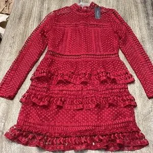 Crew neck cocktail dress tiered Lace new with tags two ruffled layers. See picture for measurements