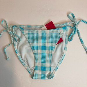 Xhilaration String Bikini Bottom Cheeky Swim Turquoise White Plaid Side Ties