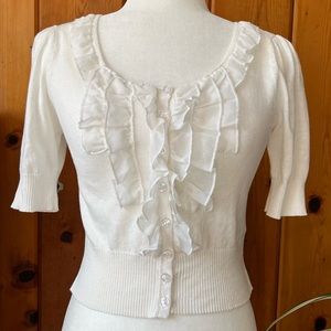 Cropped Ruffled Short Sleeve Cardigan