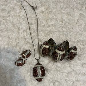 Football Rhinestone Bling Bracelet, Necklace & Earring Set