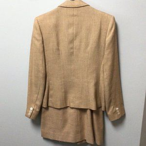 Evan Picone - Vintage tan skirt & jacket suit. Skirt is size 6, Jacket is size 8. Both in great condition. Skirt has a center back zipper with top hook closure, and side slant pockets. Jacket has a one button front closure. Sleeve cuffs have three decorative buttons on each. See photos.