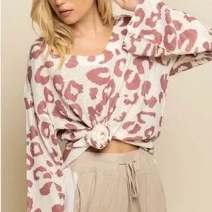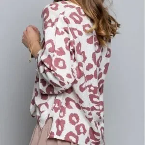 Leopard love in gorgeous raspberry(mauve)! This lightweight sweater is so versatile, alone or layered, tucked in or out, tied in a knot, you decide how to wear this fabulous favorite!