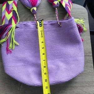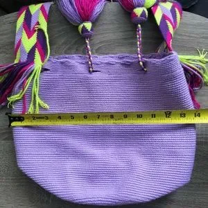 Authentic Wayuu bag / purple color / multicolored strap/ Size M/ Mochila Wayuu