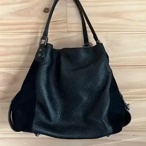 Edie combines downtown ease with utility. A tonal mix of leather and suede adds graphic elegance to the extra-spacious new 42, a soft, slouchy silhouette with a three-compartment interior designed for perfect organization.