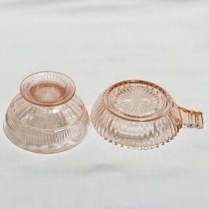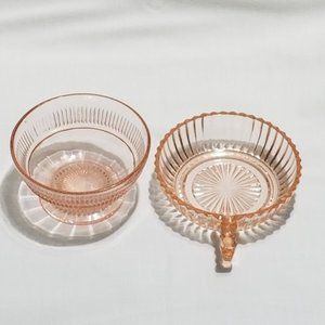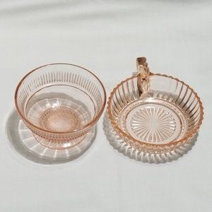 Pink Sherbet Depression Glass & Mint Dish with Handle by Anchor Hocking