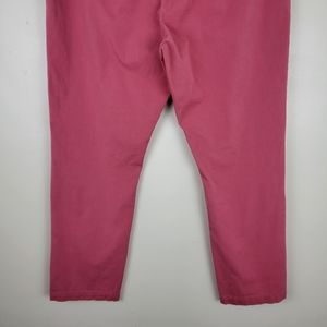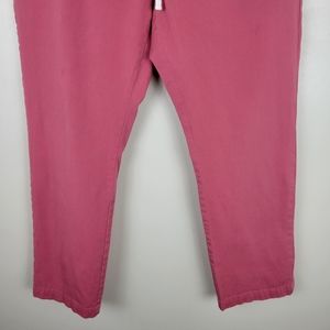 Pink pull up tie front slim leg pants. Has 2 pockets on front and back.