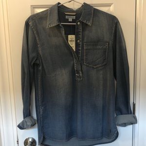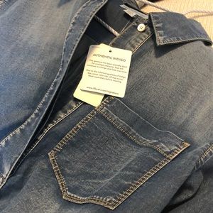NWT nice quarter length button up denim shirt with a touch of stretch (98 % cotton 2% spandex )